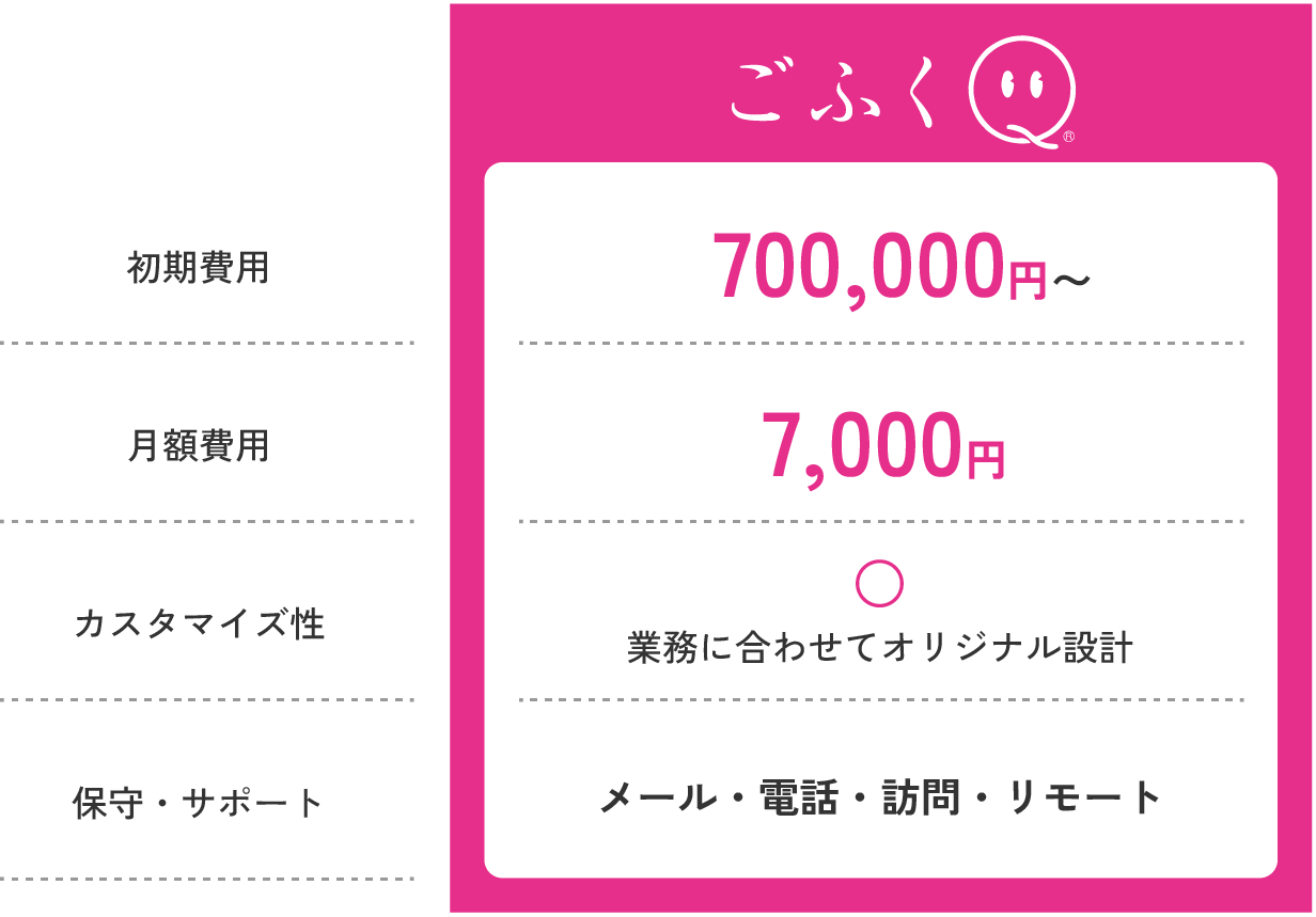 古いオフコンや独自ソフトからの移行に対応した実績もあります。ごふくQには業務に必要な機能を搭載しているので、安心して移行していただけます。